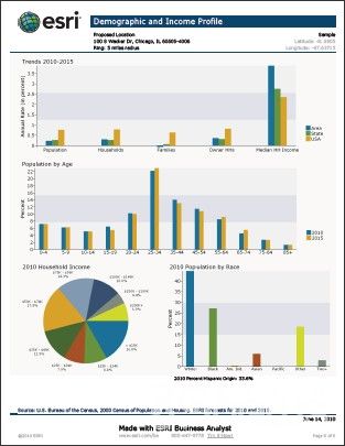 获取一个关于此地人口和市场的快照(例如:人口,年龄,收入,教育,房屋自置率和消费水平)