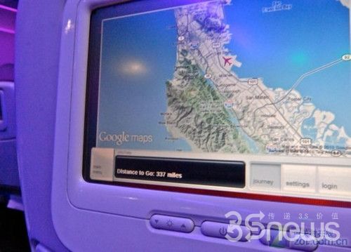 Virgin America为空中交通工具提供WiFi,而新改进的Google Map功能可以让每一位乘客在飞机上就能获得当前的位置,不仅如此,新增加的功能也使得Google Map的地形图得到进化,可以突出山、海拔等自然风貌。