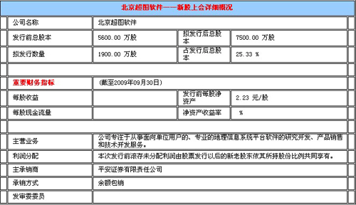 超图软件是中国和亚洲领先的地理信息系统(Geographic Information System, GIS)平台软件企业,前身为北京超图地理信息技术有限公司,成立于1997年6月,主要从事GIS基础平台和应用平台软件的研究、开发、推广和服务。其主营业务贯穿GIS 软件产业链的三个组成部分(基础平台软件、应用平台软件和应用系统软件),其中基础平台软件为公司核心业务,在行业内有一定竞争力。2006年、2007年和2008年,超图软件在中国GIS基础平台软件市场占有率分别约为10%、11%和17%;其2008年该市场占有率位居第二,仅次于ESRI中国(北京)有限公司,第三名为武汉中地数码集团公司。