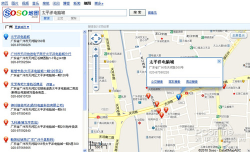 在7月份的时候,腾讯的SOSO搜索也推出SOSO地图搜索服务,目前属于公测阶段。服务也比较简单,目前只能提供地点搜索、公交查询、自驾车线路查询等服务。