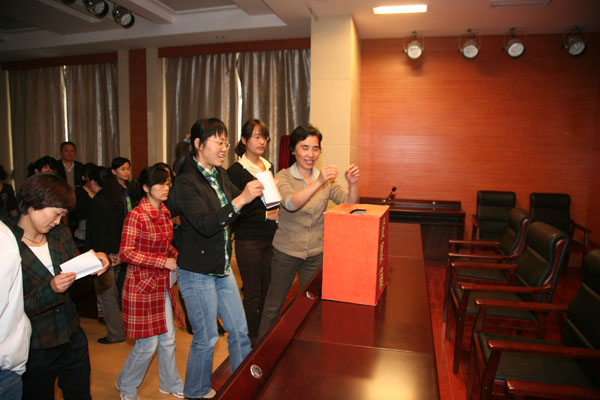 大会在支部书记张迁同志主持下,宣读了《信息中心2010年部门领导岗位竞聘上岗实施方案》。紧接着11位参加竞争人员,根据抽签顺序,发表了不超过六分钟竞职演讲,主要阐述竞岗优势,所具备的能力,下一步工作思路等。参加演讲人员准备充分,演讲精彩,掌声阵阵。演讲结束后,全体职工踊跃投票,气氛热烈。局党委副书记、纪委书记董宁同志亲率局人事部门领导及各院分管领导列席观摩。董书记还做了重要讲话,指出推行竞争上岗是下一步选人用人的方向之一,充分肯定了信息中心选人用人工作。
