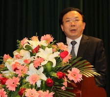 图为中国测绘学会2010年学术年会现场,江苏省副省长李小敏讲话