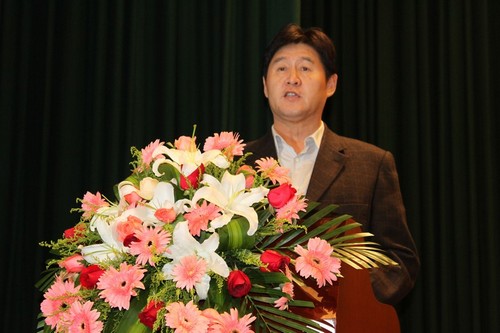 图为国土资源部副部长、国家测绘局局长徐德明讲话
