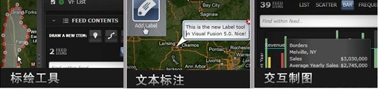 特别注意,VF5.0提供的新的绘图和编辑工具,给商业用户提供创建和维护空间数据的工具,节省用户购买传统GIS软件的开销。 所有这些功能都是通过添加按钮来实现的。用户可以在几分钟内实施建立强大的商业智能工具。