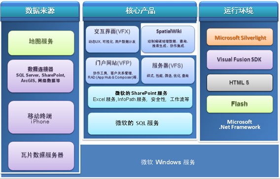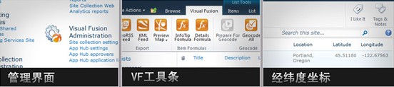 VF5.0的发布也推动了VF产品和SharePoint的进一步集成。VF5.0在利用SharePoint内容管理、快速开发以及数据安全方面的优势的同时,还增加了地理关联的能力,使SharePoint 2010的功能-如列表,搜索,和警报等充分展现。通过SharePoint提供的工作流、网站模板以及VF的工具条和图形化界面,用户可以在几分钟之内建立一个应用服务网站。 没有任何一款BI、地理信息、数据可视化软件能像VF一样充分利用SharePoint的优势。