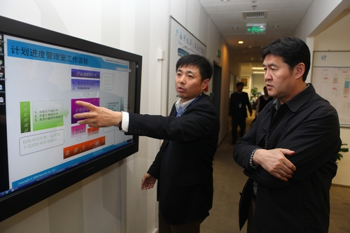 徐德明一行听取了四维图新公司关于参与“天地图”项目设计、管理的详细情况介绍,并深入公司研发现场,了解地图生产、更新进度和质量管理情况,对四维图新公司关于“天地图”项目的相关设计和管理给予充分肯定。他说,“天地图”测试版的开通,产生了巨大而深远的影响,社会反响之好出乎意料,可以说是旗开得胜。这更坚定了国家测绘局打造出一个民族知名品牌的决心和信心。国家测绘局将按照国土资源部徐绍史部长的要求,尽快开通正式版,拓展服务领域,提高网站质量,进一步满足社会民众对在线地图服务的需求。