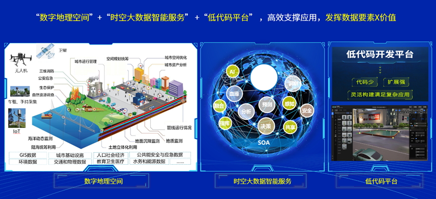 此次获奖的GeoGTP V2.0平台,深度融合AI、仿真、物联网、云计算等前沿技术,打造“数字地理空间 + 时空大数据智能服务 + 低代码平台”核心架构,实现空天地多源数据的动态融合与虚实互联,为多领域应用提供强大技术支撑。