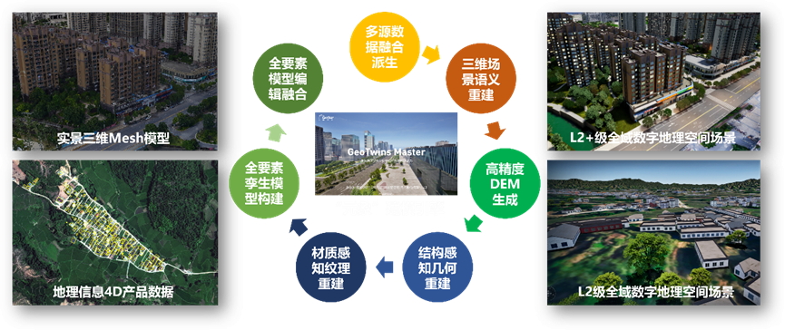2自动建模・效率飞跃:基于自主研发的“元象”建模引擎,融合 AI 深度学习技术,可自动化构建大范围全域数字地理空间。单机日处理效率可达城市区域20平方公里、农村区域200平方公里,模型面数减少96% 以上且准确率超95%。