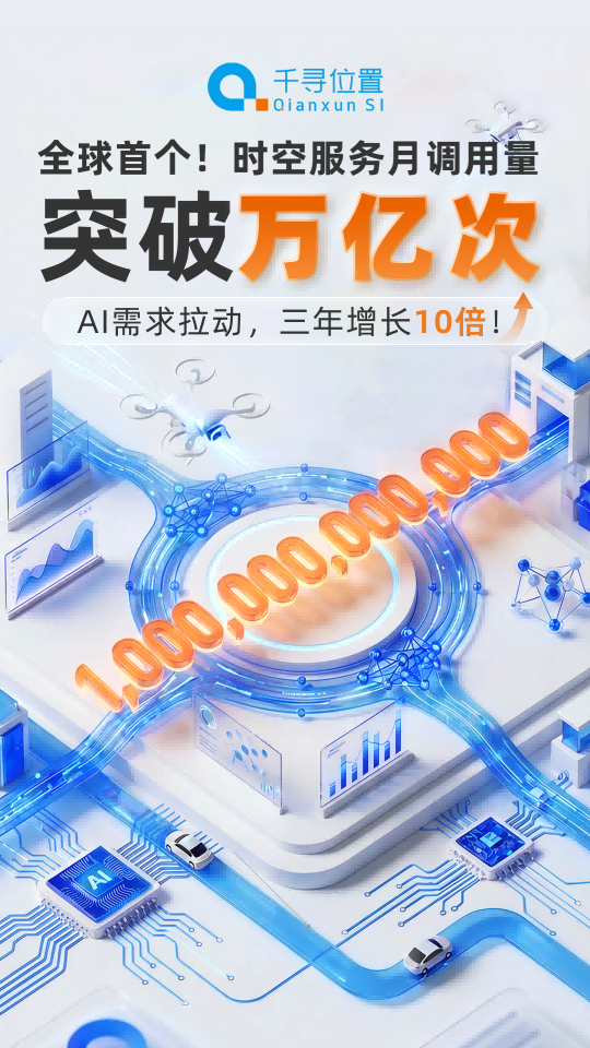 AI浪潮下,各类机器和智能设备对时空智能的需求呈现空前增长。 全球领先的时空智能科技公司——千寻位置网络有限公司(以下简称“千寻位置”)宣布,截至2025年11月,千寻位置的月度时空智能服务调用量已经连续两个月突破1,000,000,000,000(万亿)次,成为全球首个达到这一里程碑的时空智能服务平台。