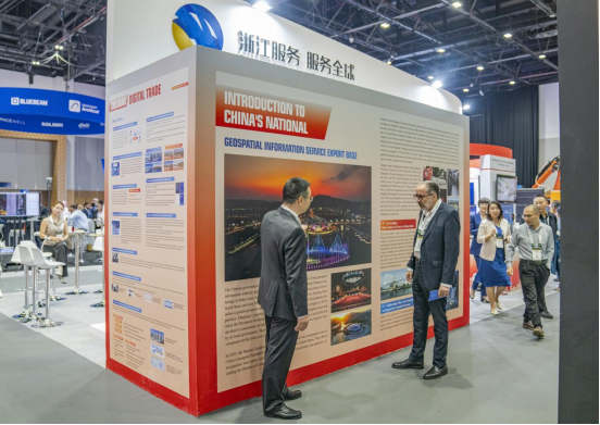 在浙江省商务厅的大力支持和中国地理信息产业协会地理信息创新发展与国际交流合作分会的指导下,承办单位浙江三博会展股份有限公司共同牵头组织了浙江地信集团、陕西天润、宝略科技等10余家中国地理信息企业联合参展观展。其中,中国浙江德清国家地理信息服务出口基地(德清地理信息小镇)企业5家。参展企业集中展示了实景三维建模、自然资源动态监测、城市地下空间智能测绘及北斗高精度定位、无人机AI识别、云计算车辆监控数据平台、数字人+低空监测等解决方案和国产化硬件装备,并现场举办了中国浙江德清国家地理信息服务出口基地(德清地理信息小镇)推介会。