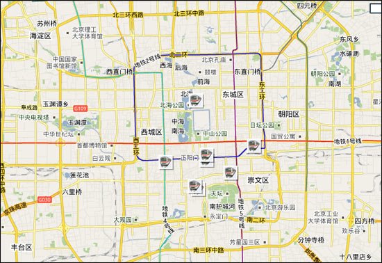 打开谷歌春运地图2011版,选择自己所在的城市,谷歌地图上就会显示所在城市的票务中心所在位置,可以很好的指引网友前去购票。用户还可以选择“地图”、“卫星”、“地形”三种模式看谷歌地图。
